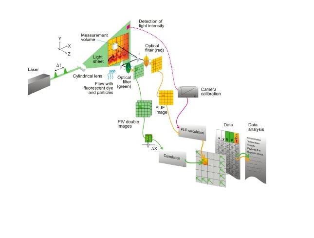 平面激光诱导荧光(PLIF)一种光学测量技术用于测量液体和气体流动中瞬时的全场浓度分布或温度分布。