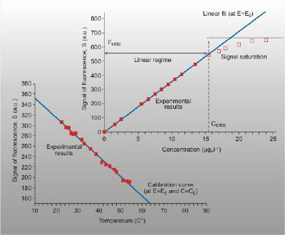 在荧光信号检测时,使用带有截止滤光片或窄带滤光片的相机,以便只记录荧光。荧光信号的强度随浓度、温度和其它几个实验参数而变化